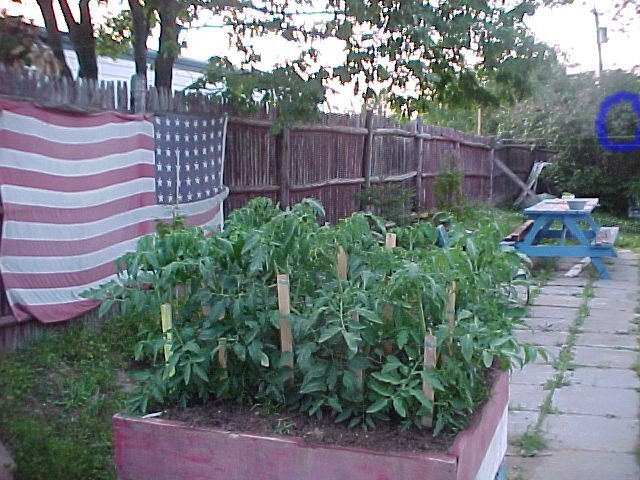 i took this photo in the back yard today 7/13/2005 of my tomatoe plants and such and when i got to look at this picture better i noticed someone looking over the fence what do you think next photo has him circled could it be jesus? .
